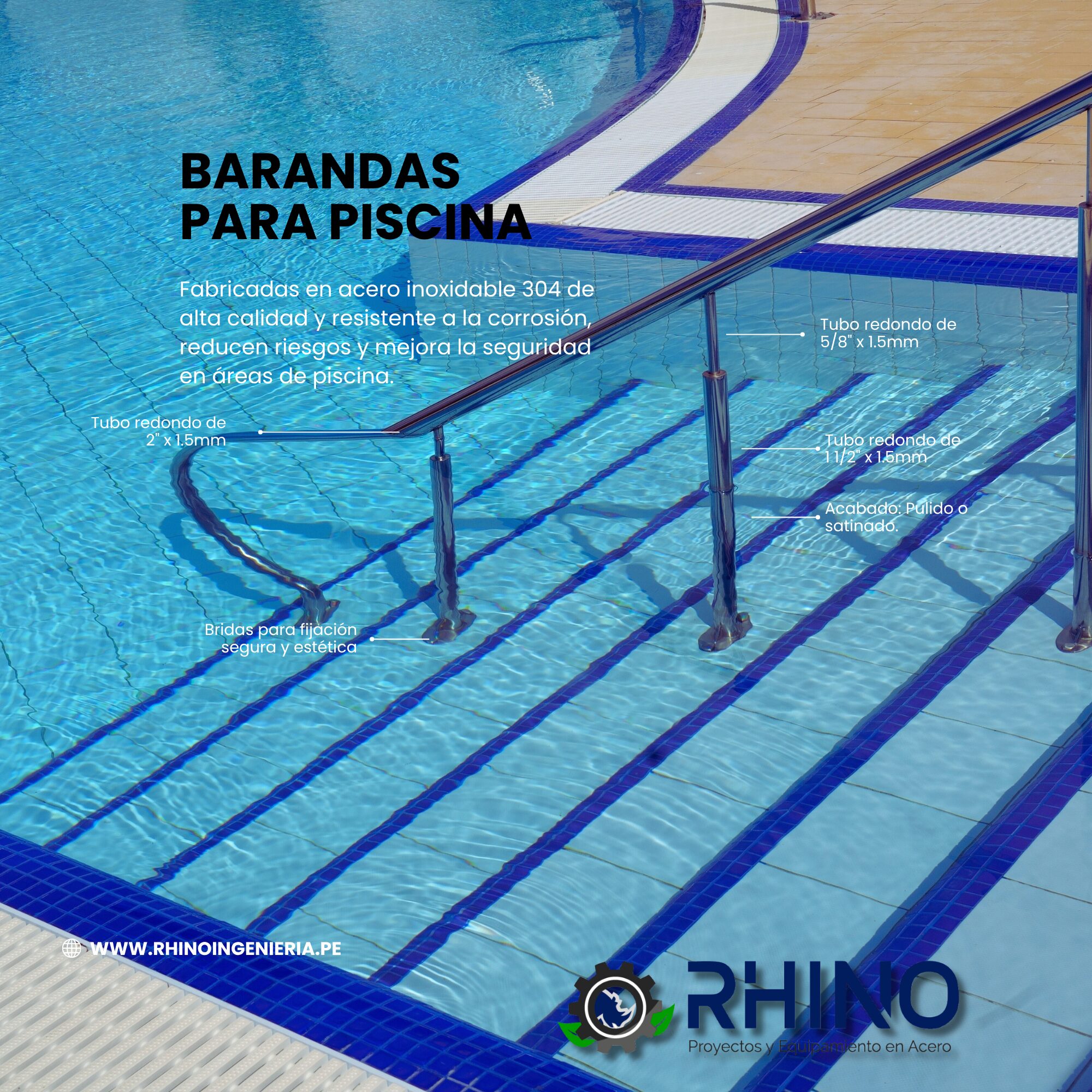 🌊 Barandas para Piscina – Seguridad y Elegancia en Acero Inoxidable 304