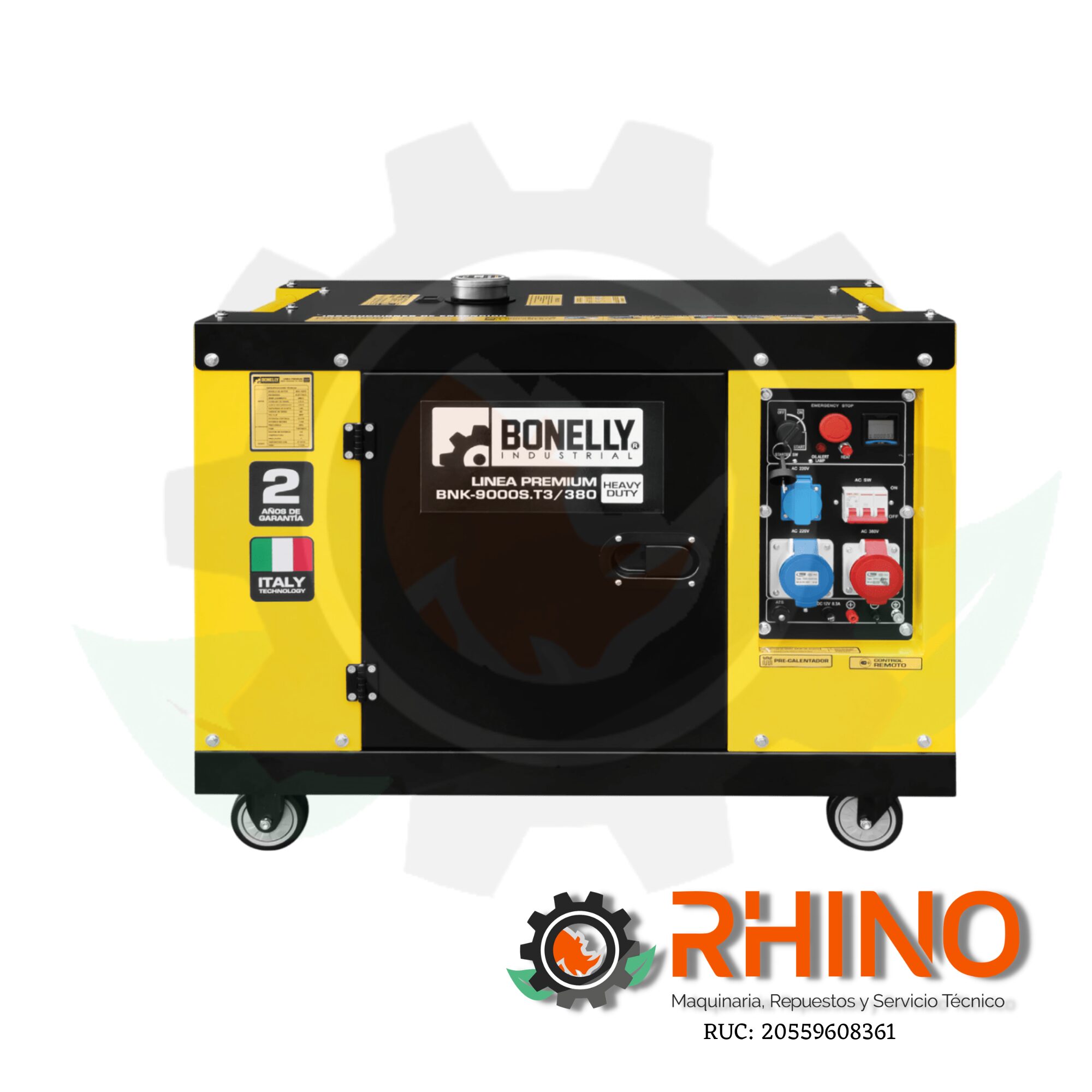 Potencia, eficiencia y silencio en un solo equipo. El Bonelly BNK-9000S.T3/380 ha sido diseĂąado para ofrecer energĂa trifĂĄsica confiable en entornos industriales y comerciales donde la continuidad elĂŠctrica es esencial. Gracias a su motor diĂŠsel de 12 a 14 HP y a su potencia mĂĄxima de 9.7 KW, este generador garantiza el rendimiento que requieren maquinaria y equipos de alto consumo ????.